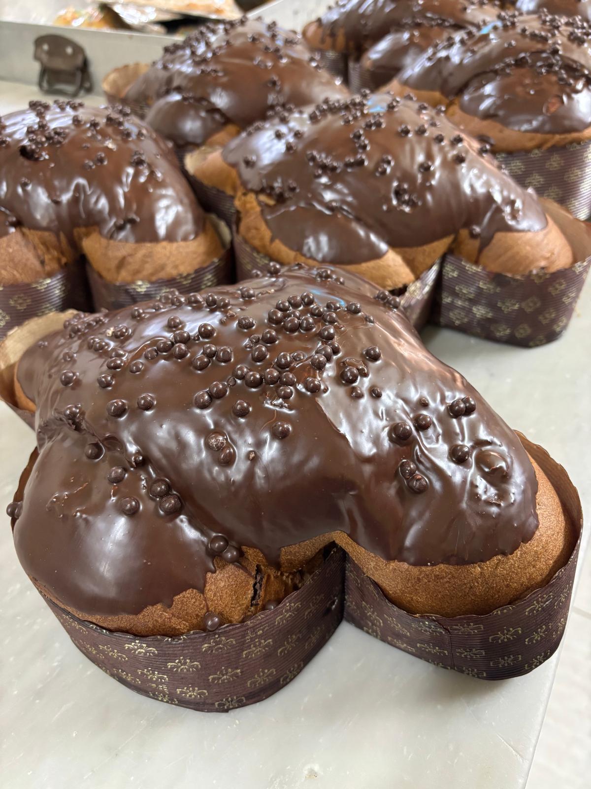 La nostra colomba al cioccolato artigianale è una golosa delizia per gli amanti del cioccolato. Realizzata con un soffice impasto arricchito da gocce di cioccolato fondente e ricoperta da una glassa lucida al cioccolato, regala un sapore intenso e avvolgente. Ogni fetta è un perfetto equilibrio tra tradizione pasquale e passione per il cioccolato. Colomba già confezionata.
